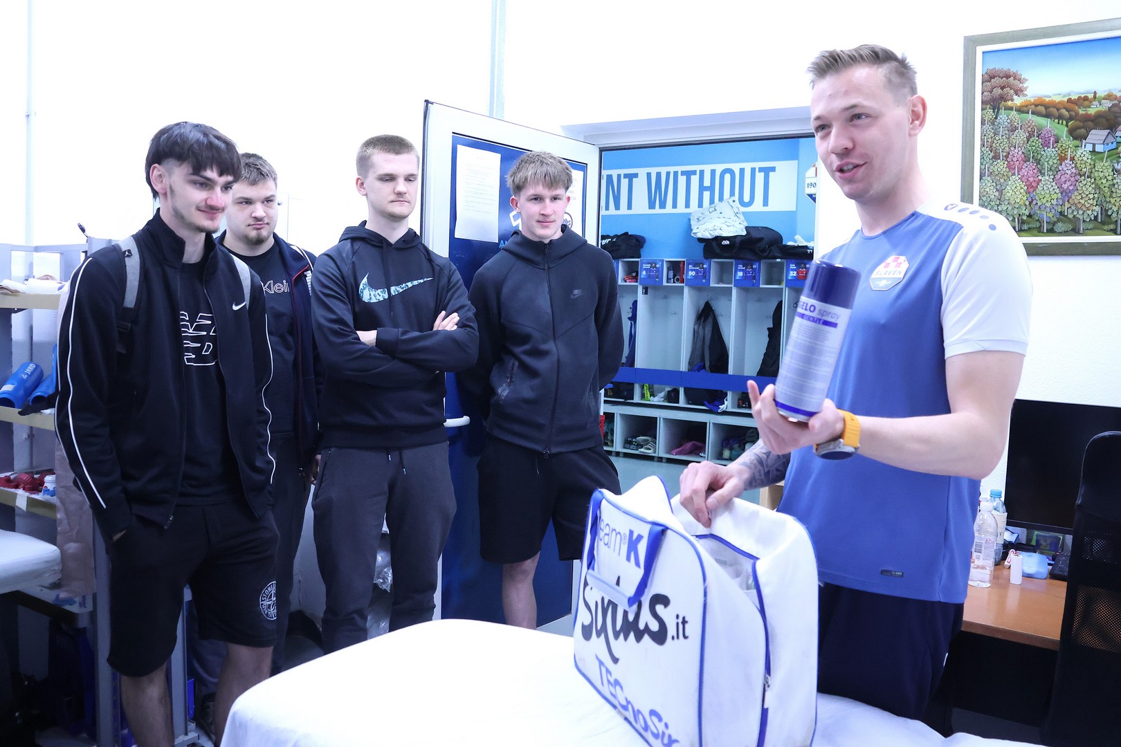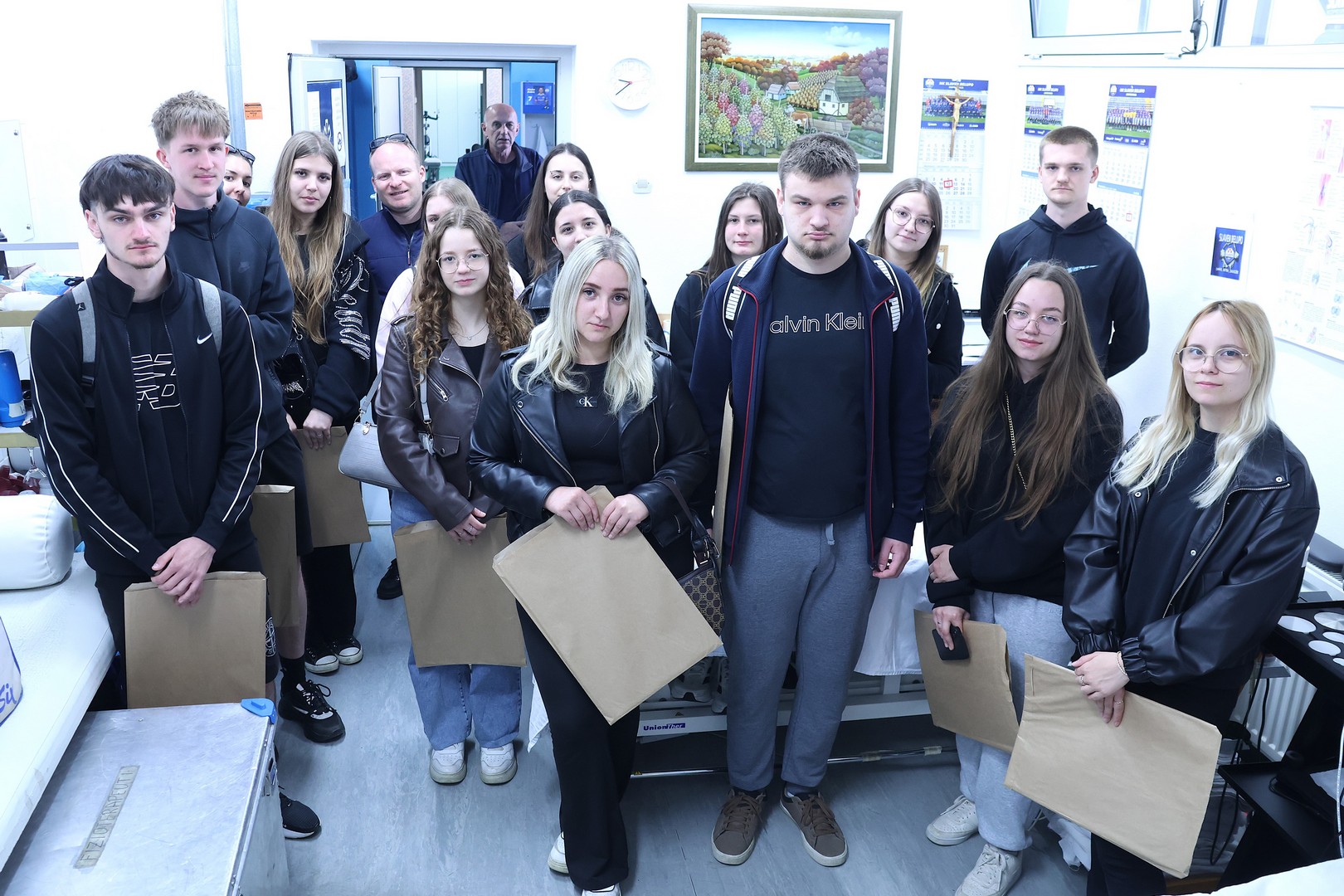 Riječ je o učenicima završnog razreda smjera Fizioterapeutski tehničar/tehničarka, koji su došli u pratnji profesora Darjana Tomašića, inače bivšeg slavenaša, člana stožera, koji je nekoliko sezona proveo kao fizioterapeut prve momčadi Slaven Belupa.